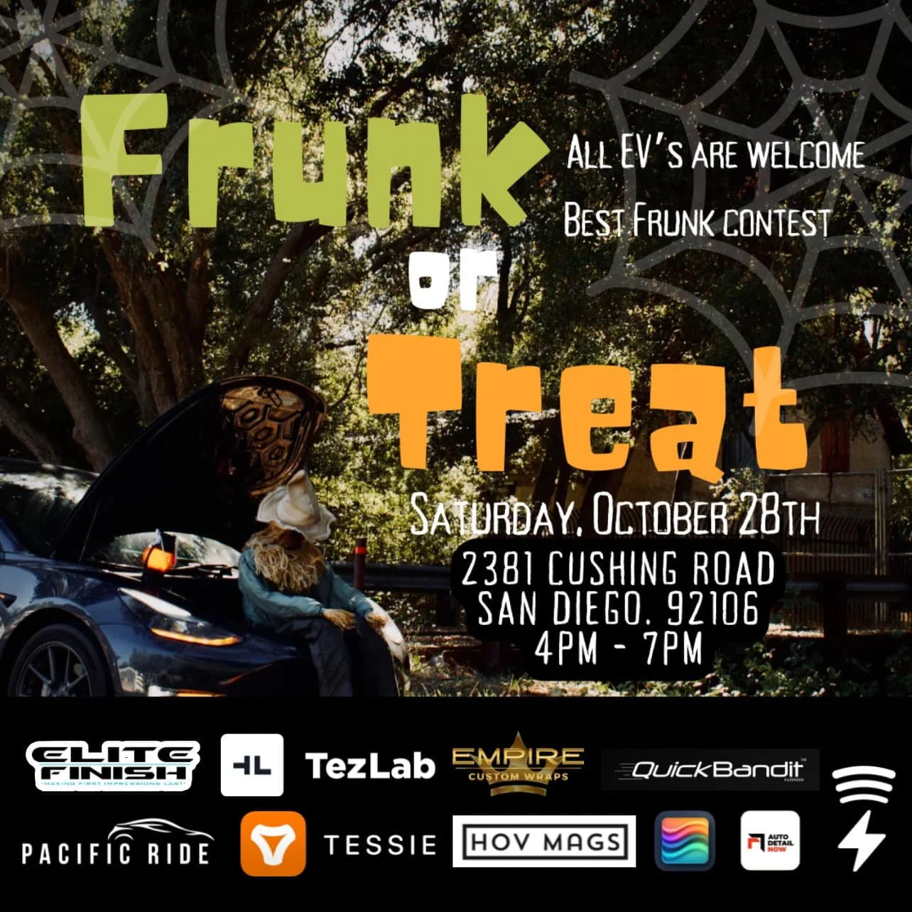 We will be hosting our OWN frunk or treat event here in San Diego on Saturday Oct 22nd, 2022 from 5-7pm.